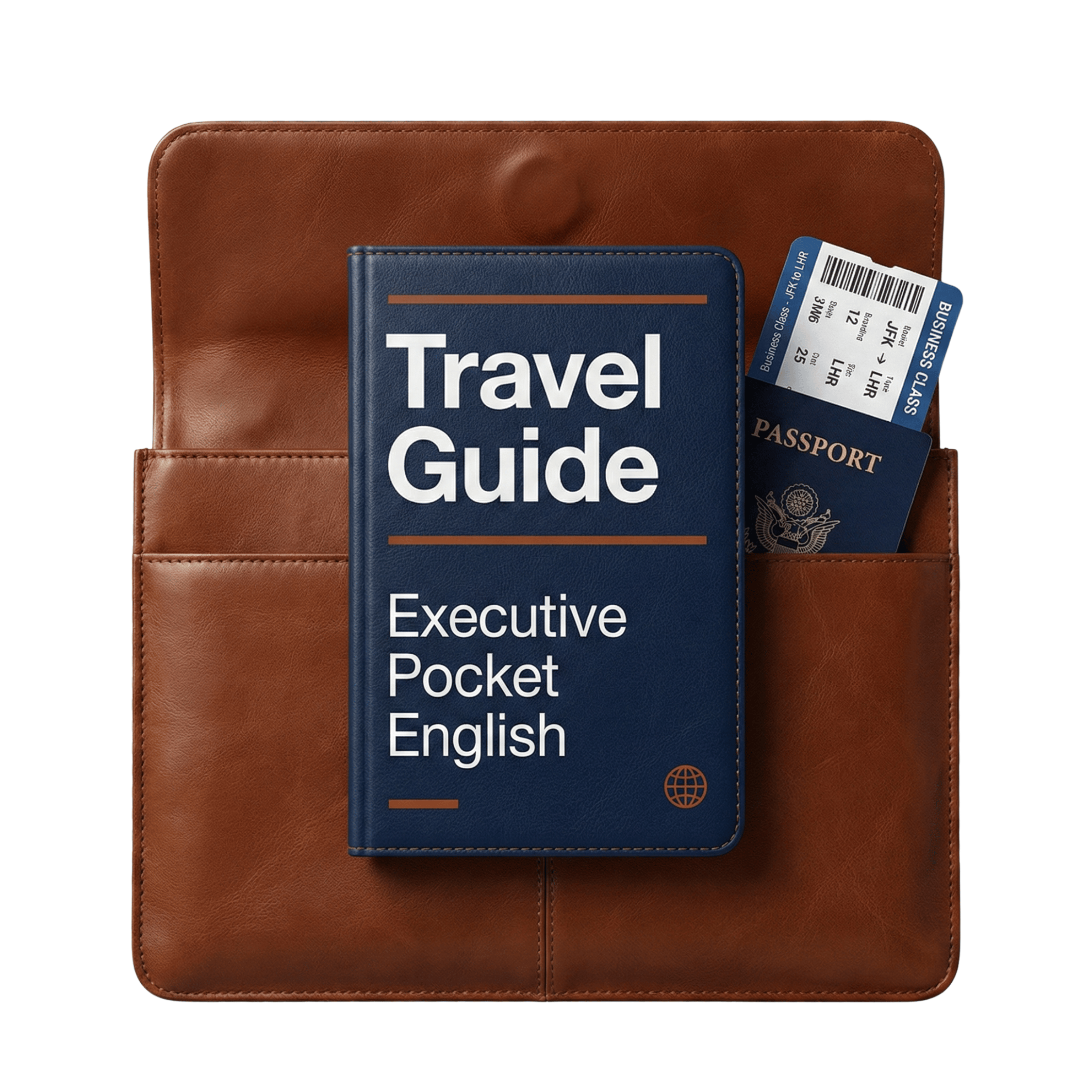 Você pode liderar reuniões globais… mas ainda se sentir desconfortável no aeroporto ou no hotel. O Travel Pocket Guide foi criado para isso. Frases prontas para situações reais: • Aeroporto e imigração • Hotel e atendimento • Restaurantes e compras • Conversas informais em viagem Com orientações simples de pronúncia para você falar com segurança. Porque presença internacional começa antes da sala de reunião.